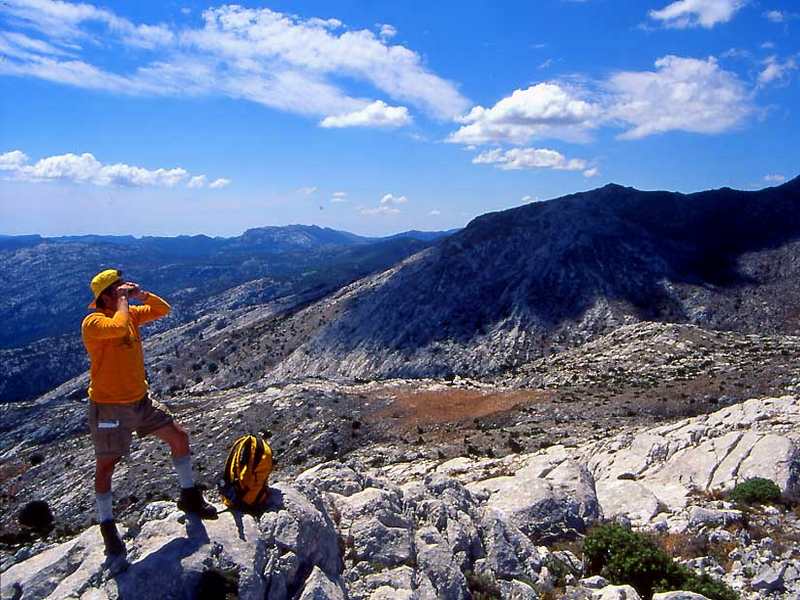 Sardegna: tutto attorno a noi, si stende a corona, selvaggio e frastagliato, attraversato da imponenti gole e rigogliose foreste, tutto il supramonte sino alle superbe cime del